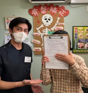 患者様の普段の生活であまり身体に良くない習慣や姿勢などの改善案を提案、説明させて貰います。